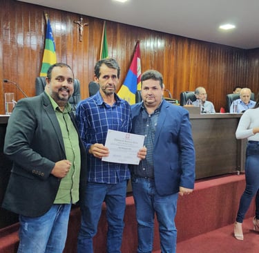 Em seu discurso final, o vereador Carlos Eduardo transformou a homenagem em um apelo para a resolução dos problemas de infraestrutura, citando estradas, pontes, mataburros e, principalmente, a falta de energia de qualidade.